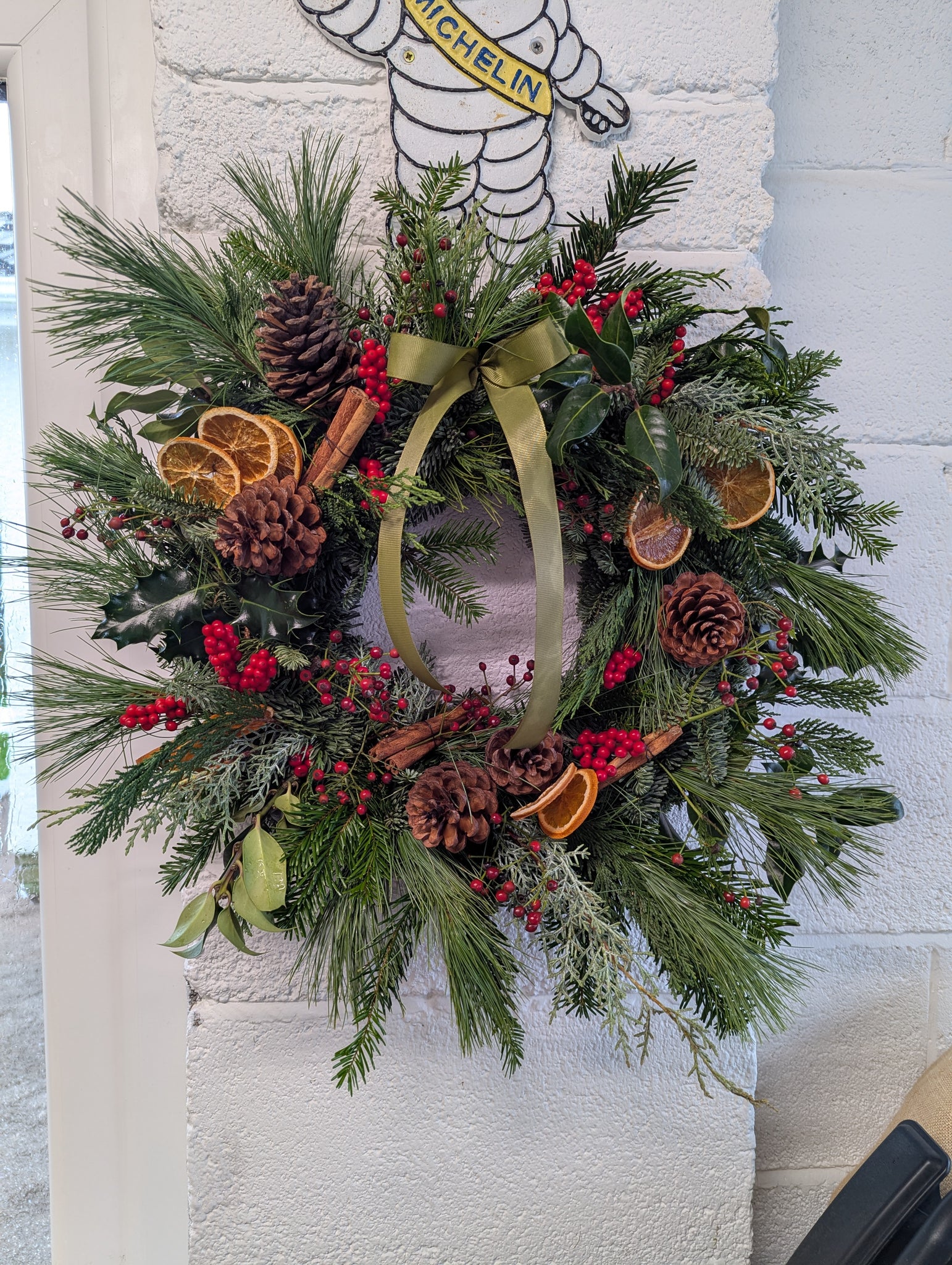 Wreaths are available for collection or delivery from 17th November. Our straw backed wreaths will last way into the New Year and eventually dry out over time.