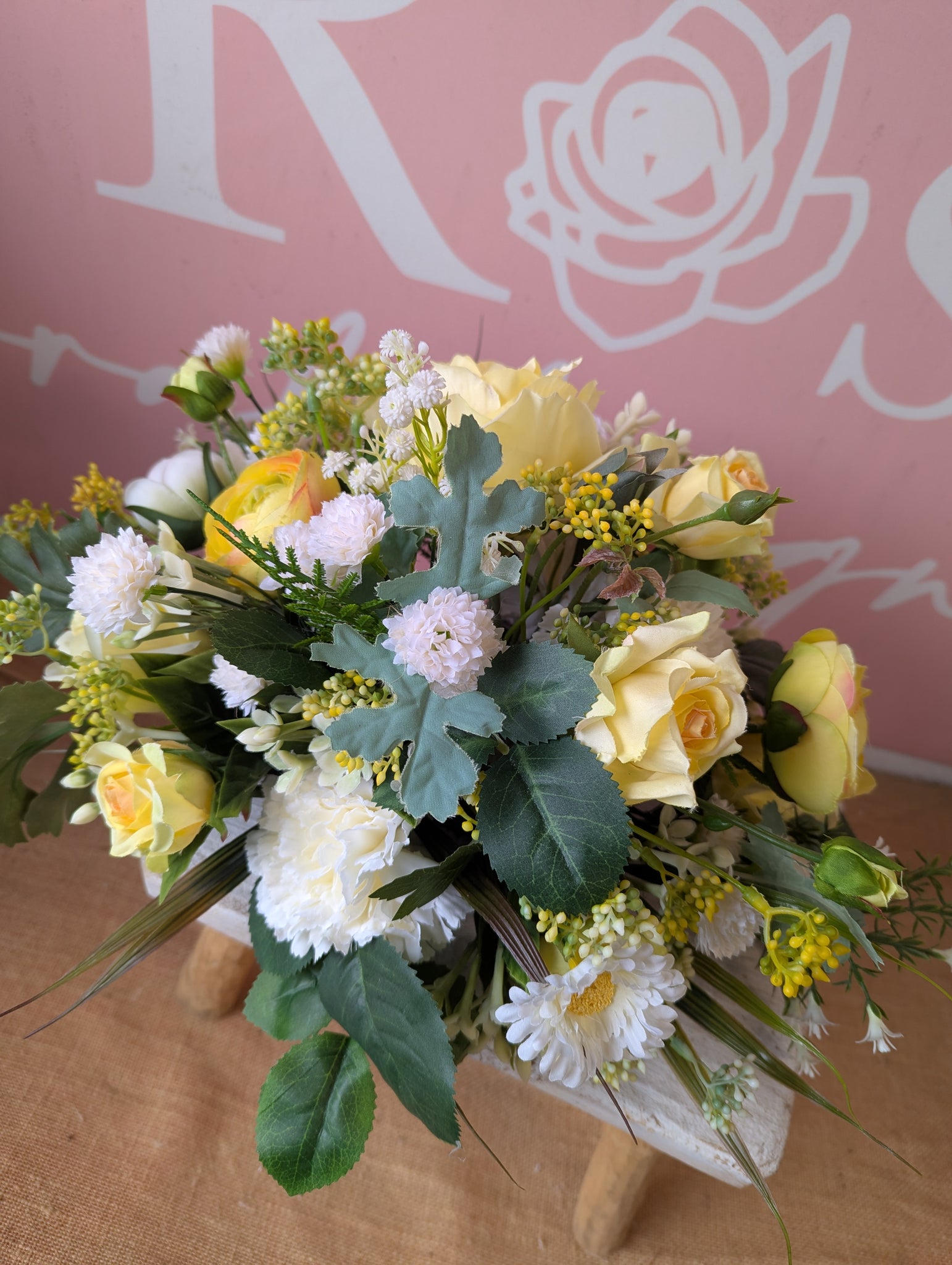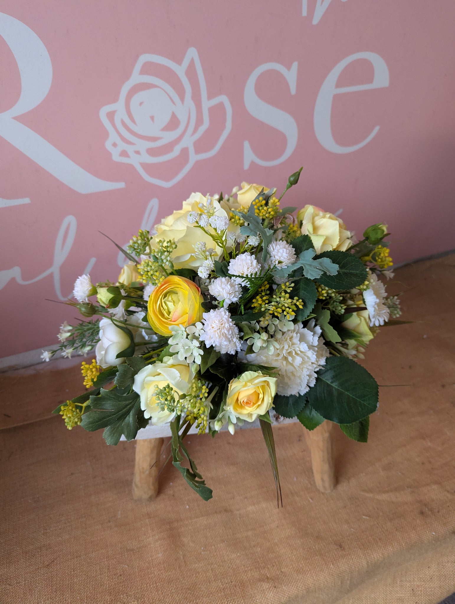 A luxury faux grave posy, beautifully handcrafted by Little Rose Floral Design in Porthcawl, South Wales. Designed using a delicate mix of artificial stems in your chosen colour palette. I will contact you via email to discuss colour options.