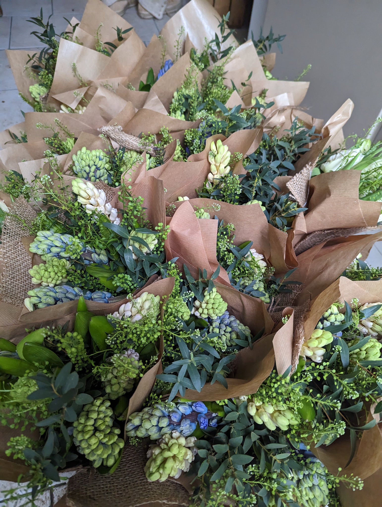 Available for collection on Friday 13th February or delivery Saturday 14th March 2026. Each arrangement is expertly styled with premium seasonal flowers and finished with hessian wrapping and ribbons. Due to seasonal availability, colours may differ slightly to the image shown however your bunch will be filled with beautiful spring Hyacinth stems.